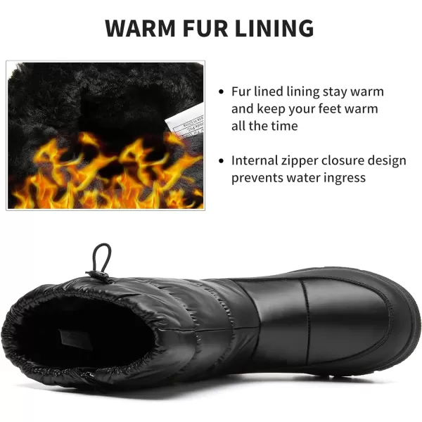 FRACORA Womens Winter Snow Boots Fur Lined Mid Calf Boots Warm Slip On Boots for Women(Black)